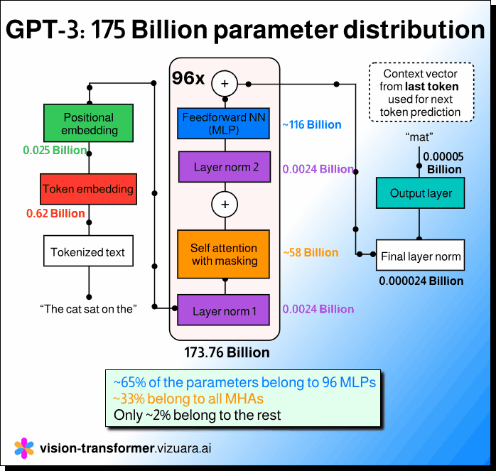 I have explained this parameter distribution in detail in a lecture on Vizuara’s YouTube channel, using the same visual that breaks down GPT-3’s 175 billion parameters into attention, MLP, and other components. It is a concise but essential piece of understanding for anyone who wants to move beyond the surface of the Transformer architecture.