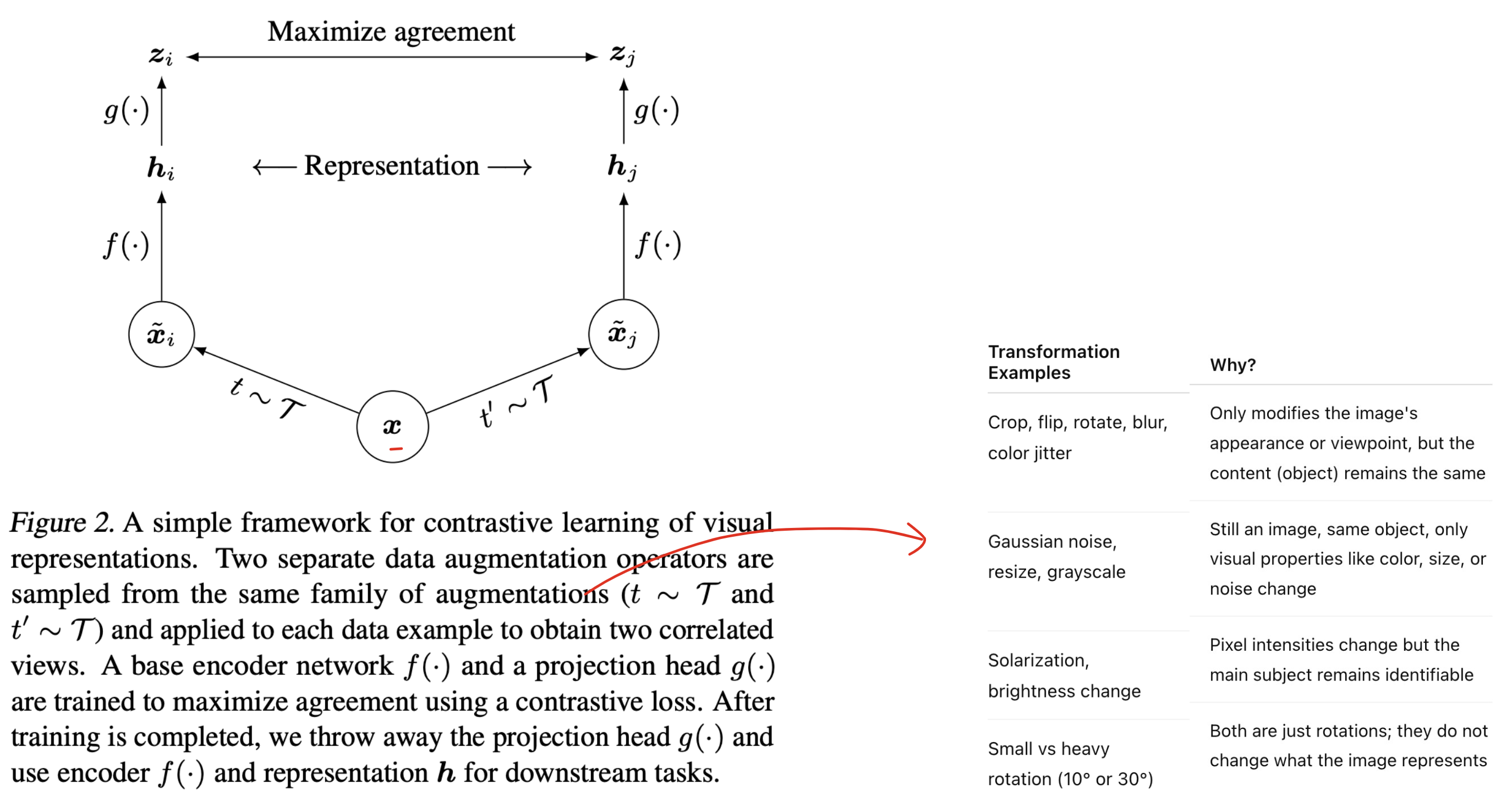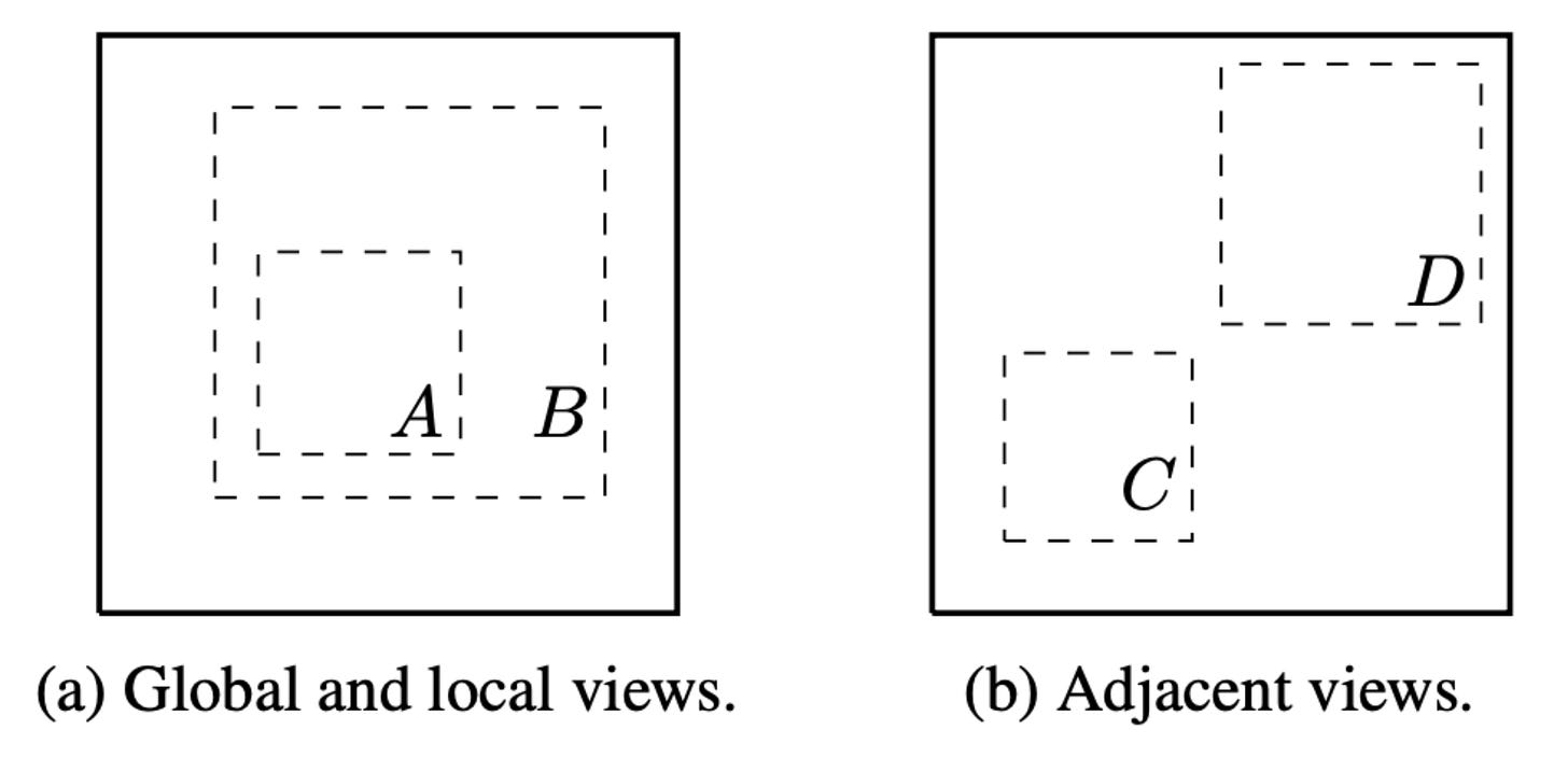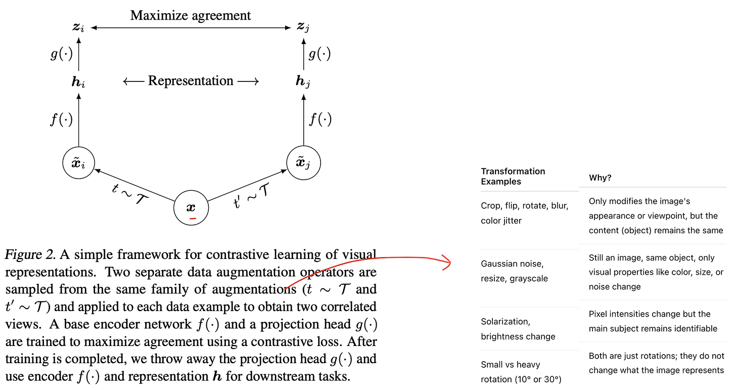 Both augmented images still mean the same thing — so the model must learn that they belong together.