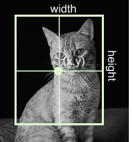 Figure 1.2 Bounding box parameterization for object detection, showing the object represented by the center coordinates (x,y) along with its width and height, which together uniquely define the spatial extent of the detected object within the image.