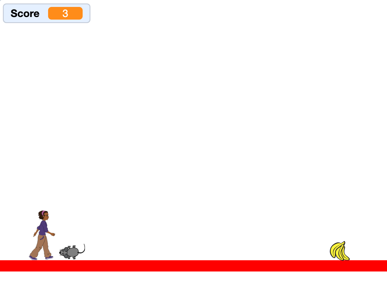 The basic idea: the character keeps running forward. If you jump and pass over the banana, you gain points. If you fail and hit the mouse, your score resets.
