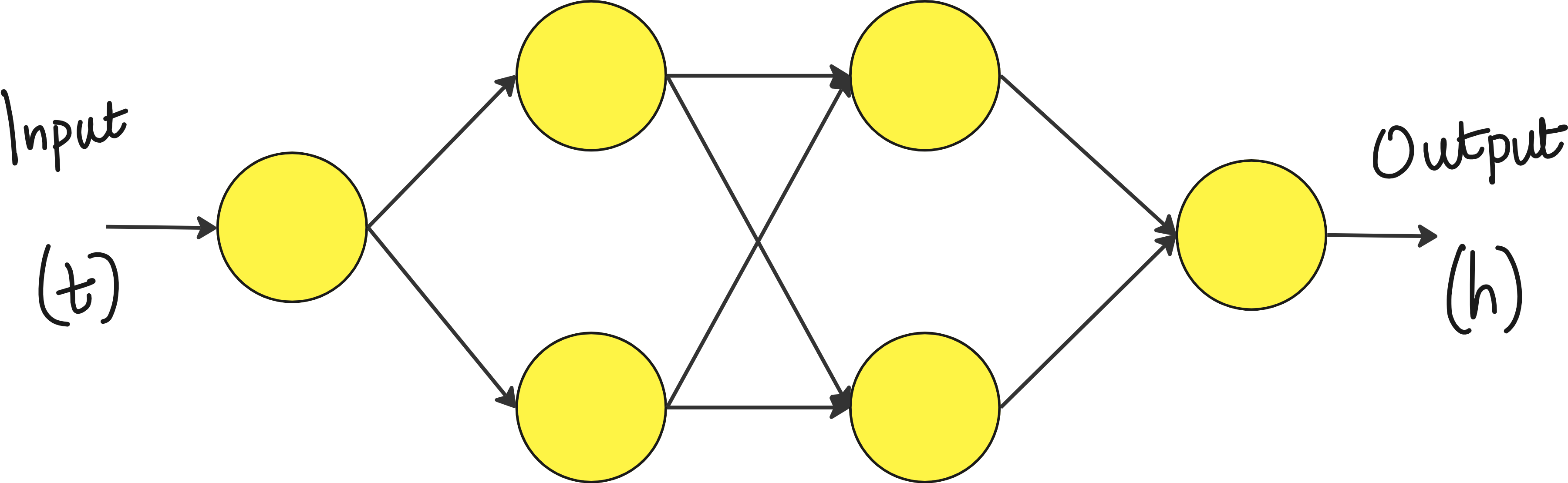 The neural network will be initialized with random weights. This means the predictions of h(t) made by the neural network will be very bad initially as shown in the image below.