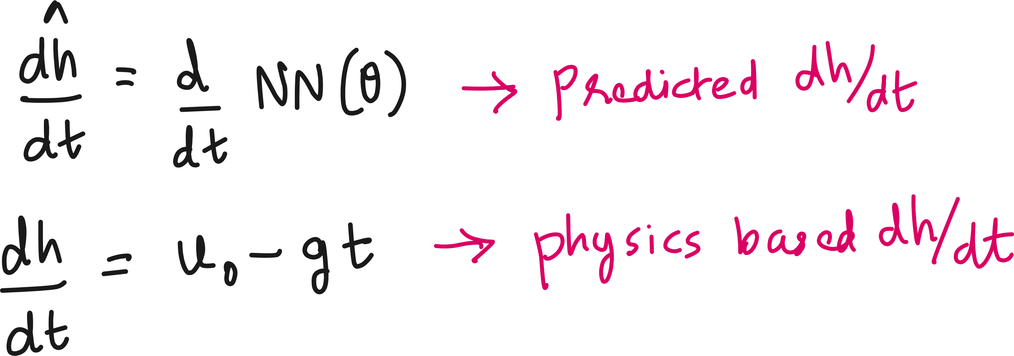 Now we can define a loss due to the difference between predicted and physics-based dh/dt.