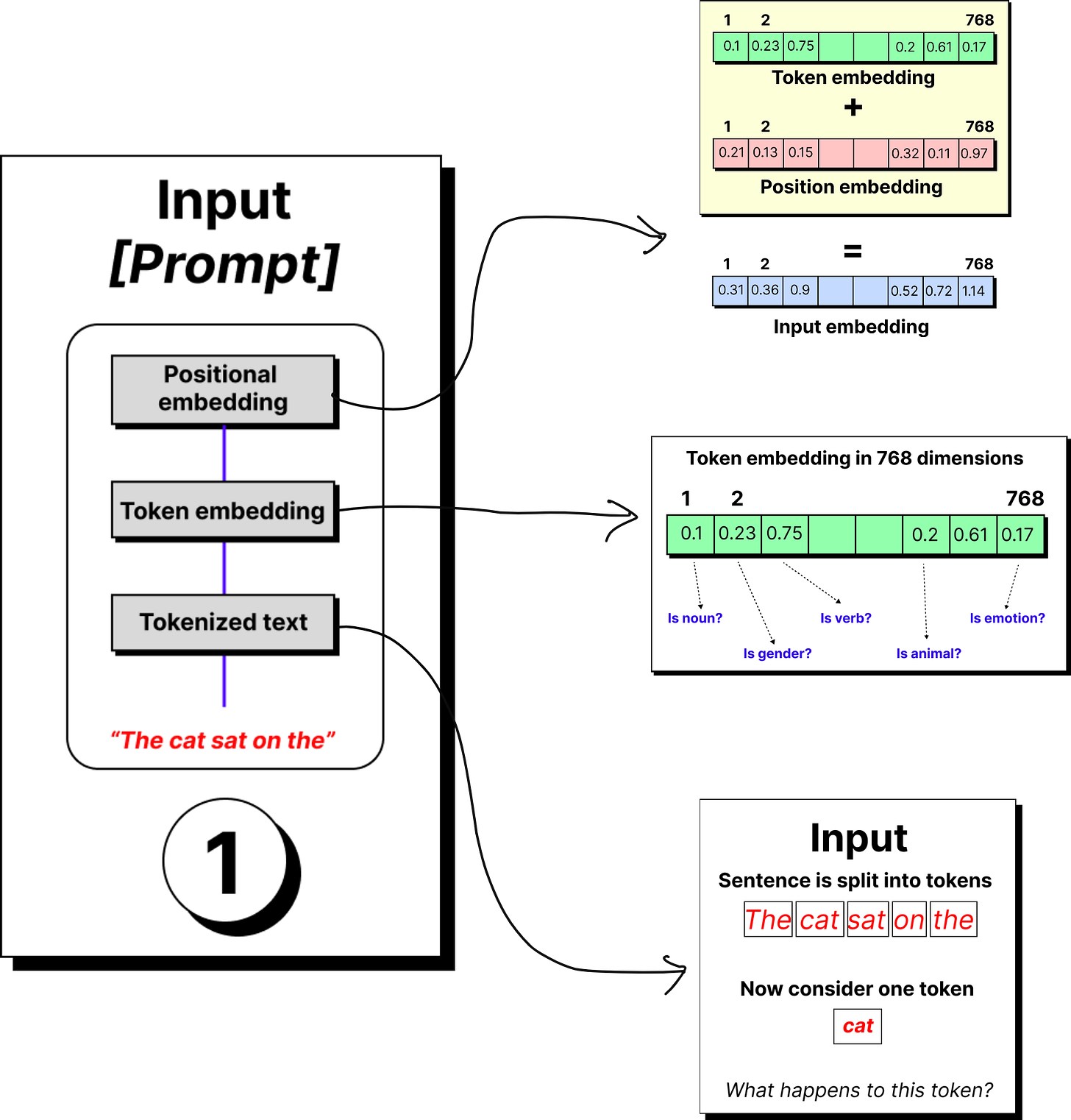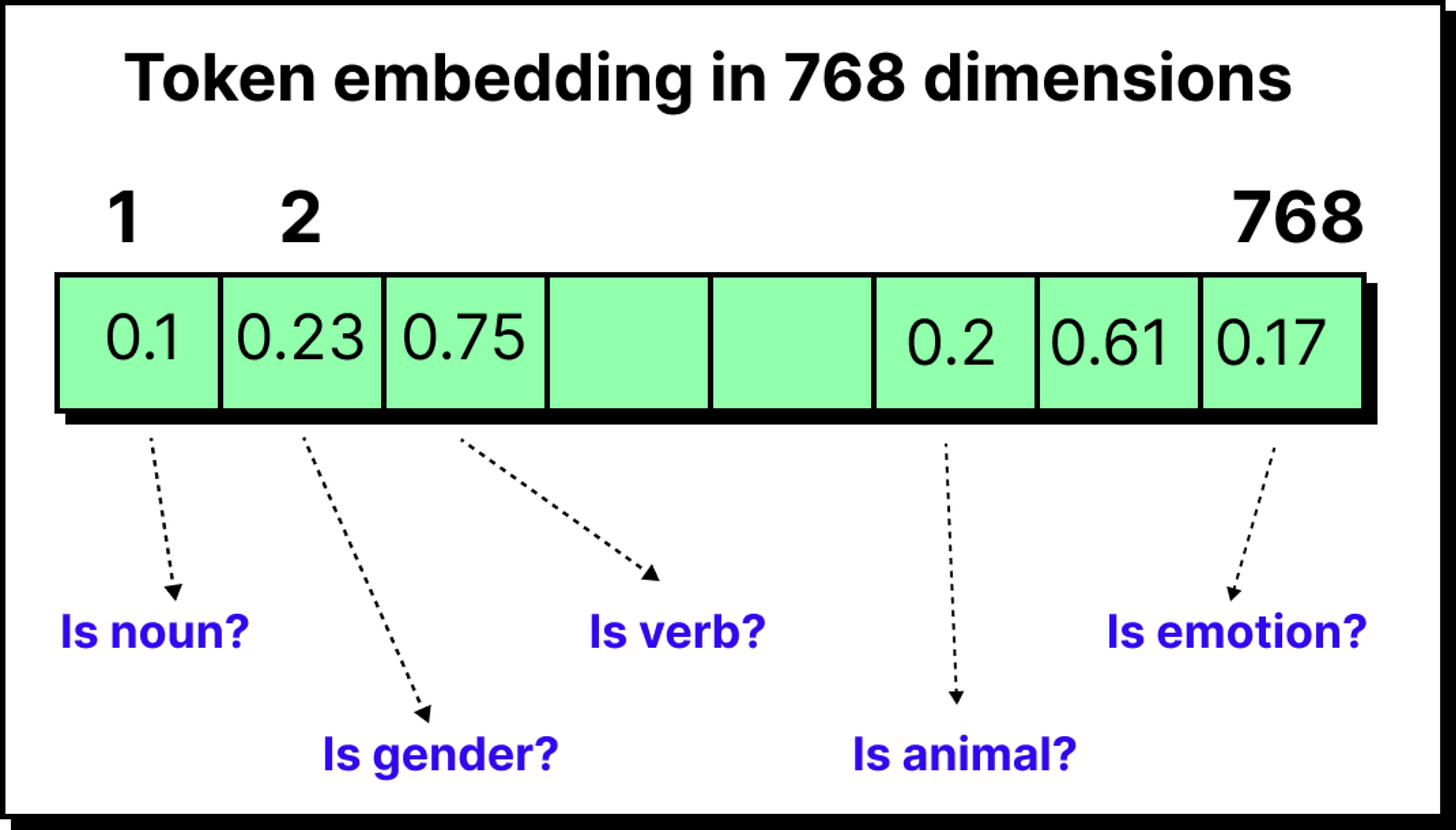 At this stage, the word cat is no longer just “cat” but a 768-dimensional fingerprint that captures how it relates to other words in the training data.