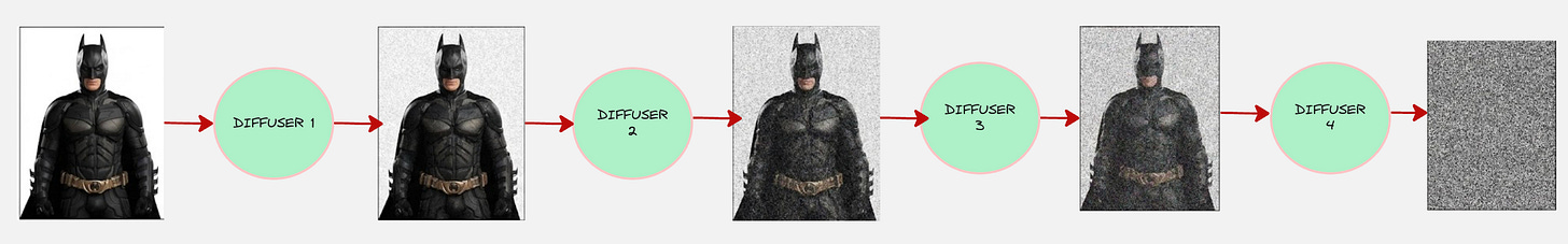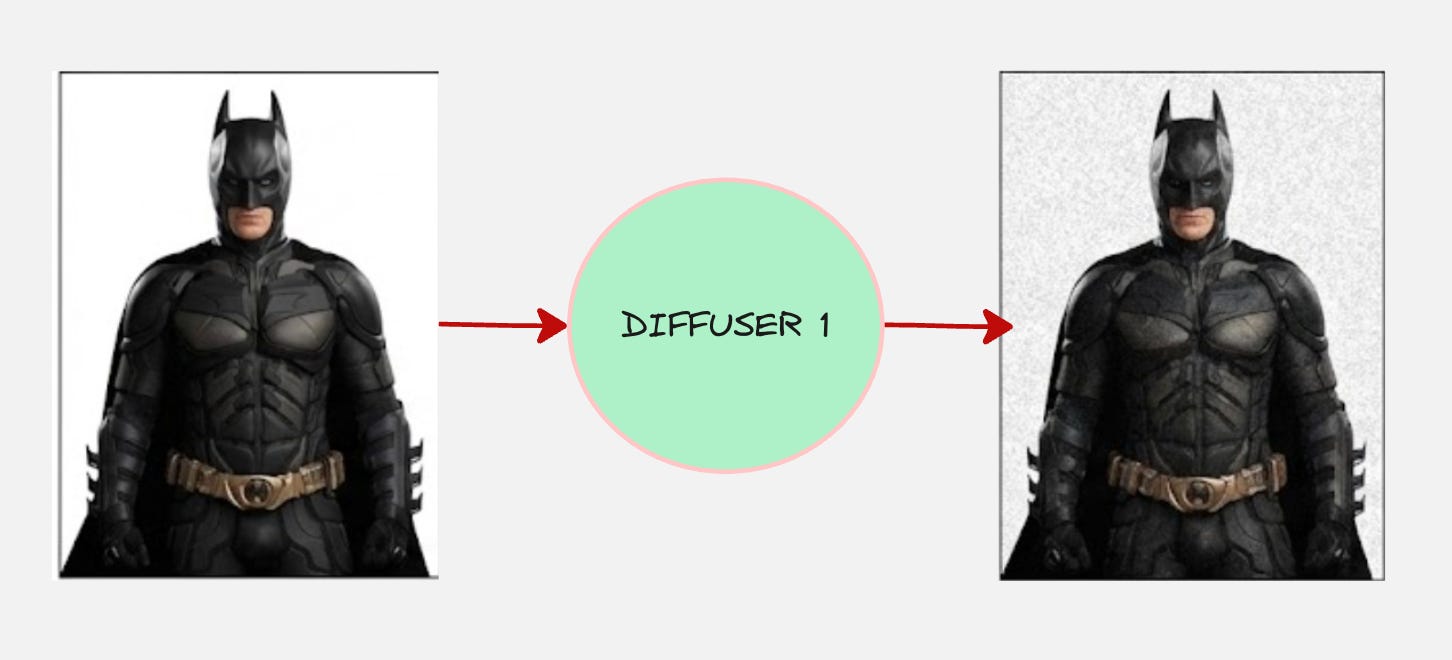 Okay, this is looking good. But, we have multiple diffusers (4 in the diagram above). Let us how we transform the original image to the final image mathematically: