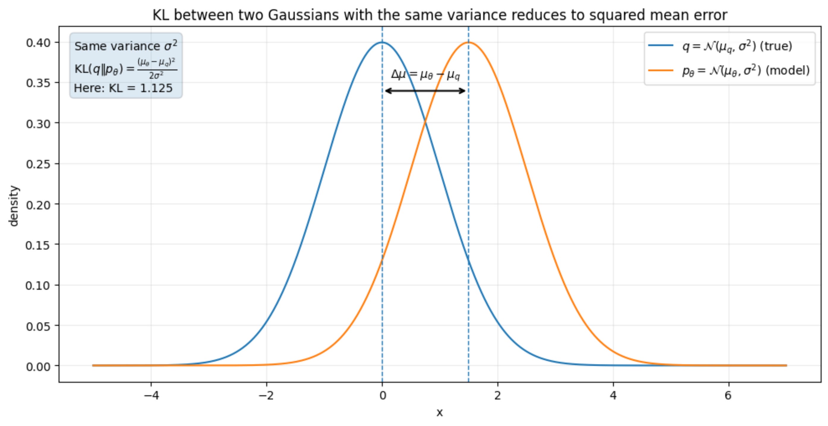 This means that our task is to minimize the KL divergences between two Gaussians with the same variance and different means.