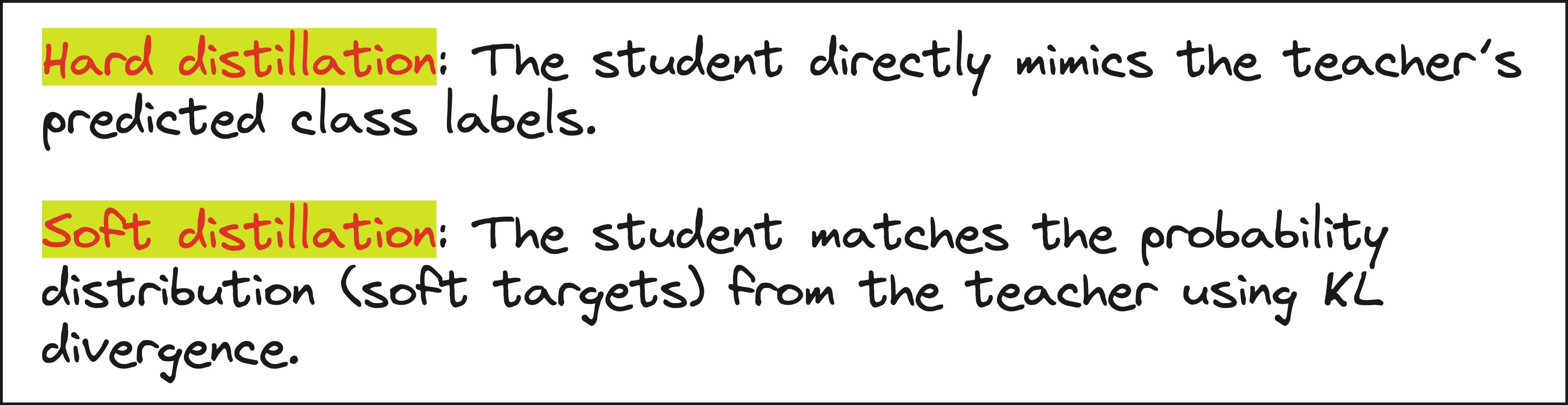 In performing knowledge distillation, we can use hard distillation or soft distillation.