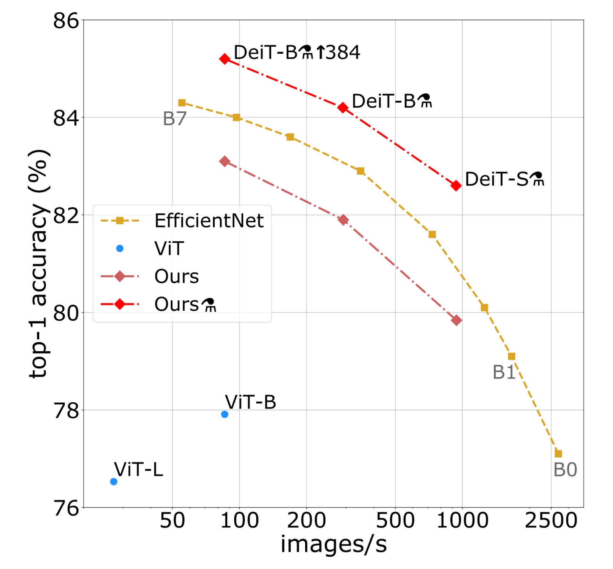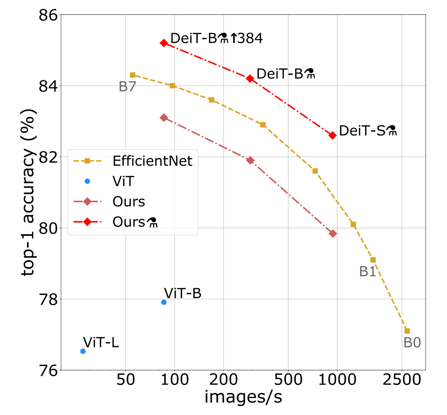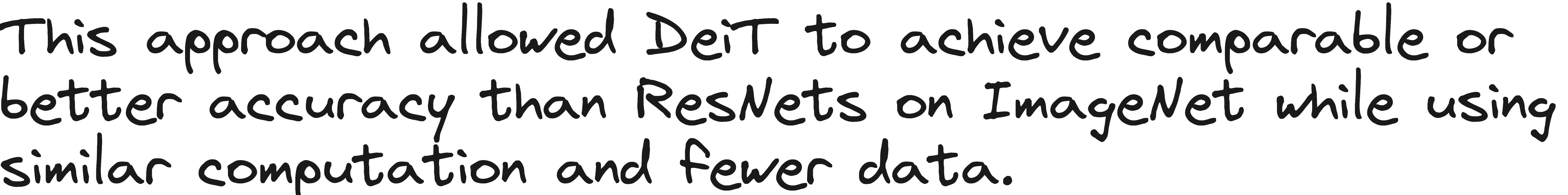 DeiT outperformed ViT and comparable-size EfficientNet models (SOTA at the time) in terms of performance and accuracy.