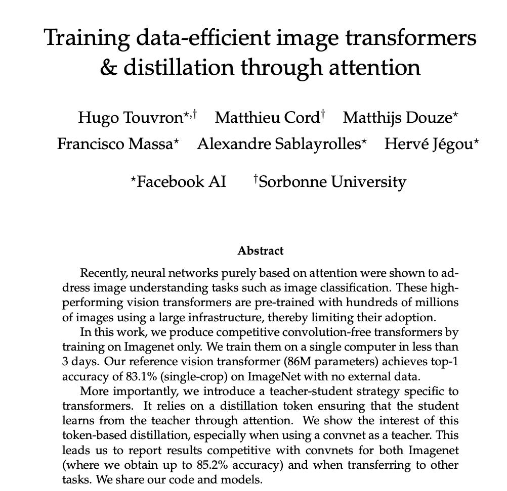 The data-efficient image transformer paper was written by a team of researchers from Facebook AI Research. It has more than 10,000 citations now and is regarded as one of the most seminal papers that extended the capabilities of Vision Transformer.