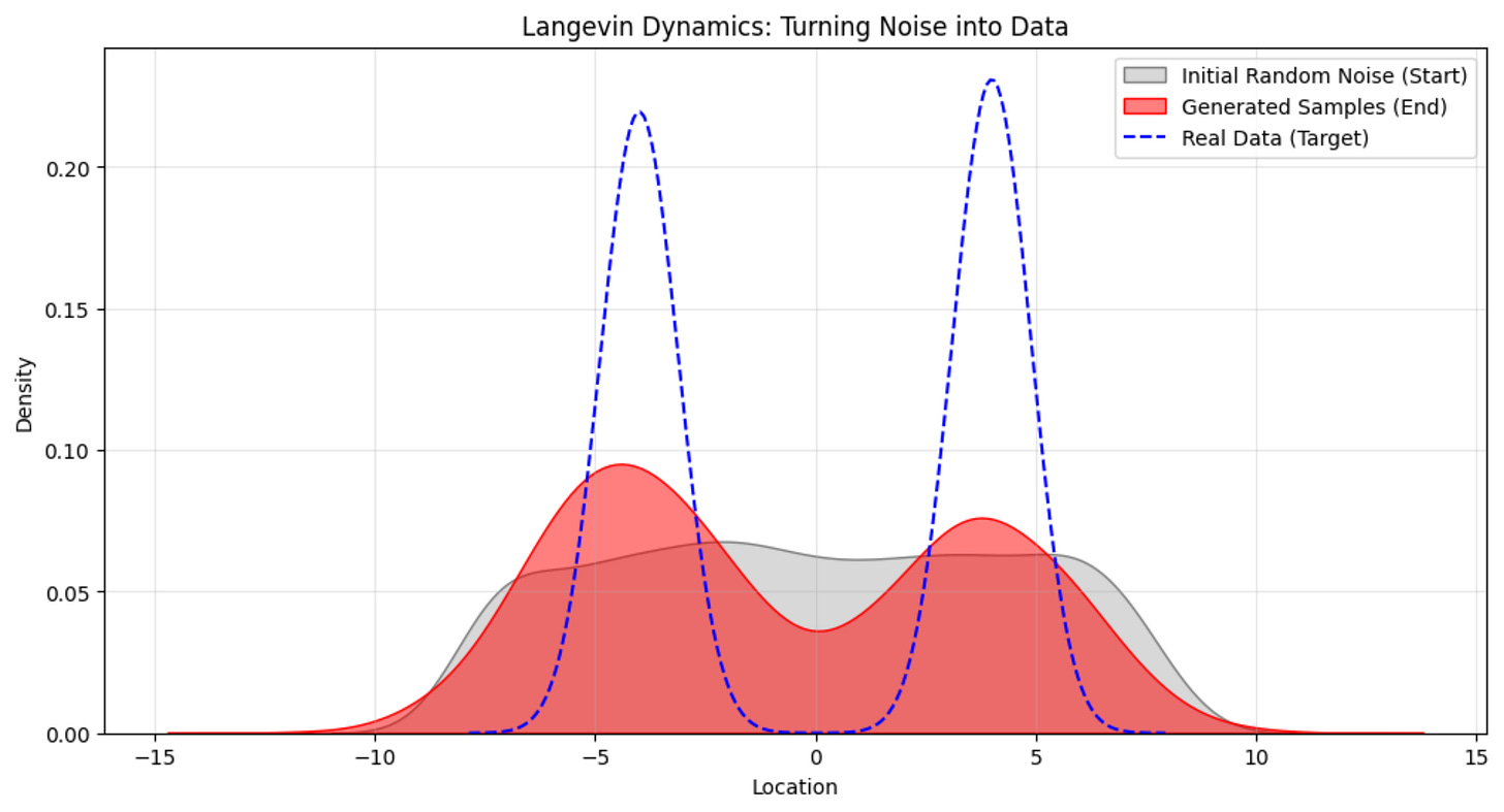 Once the score function is learned, let us sample from it using Langevin Dynamics.