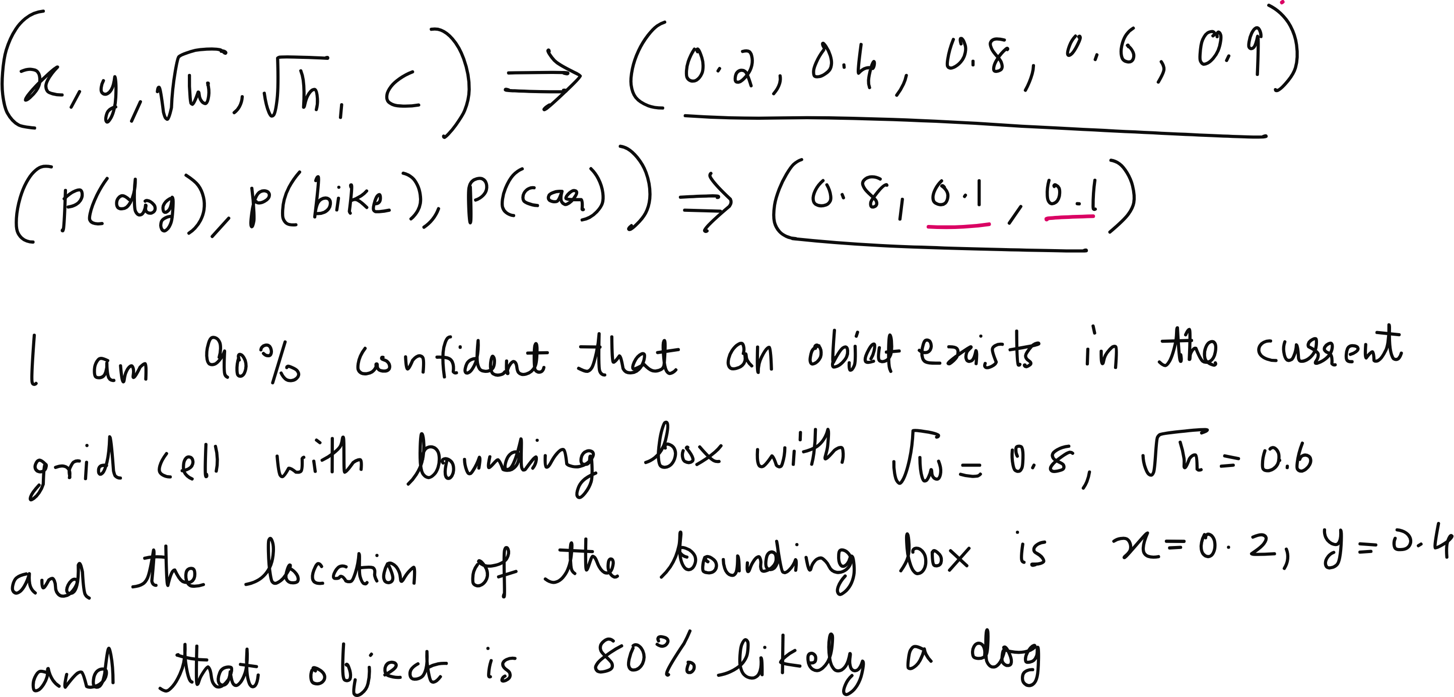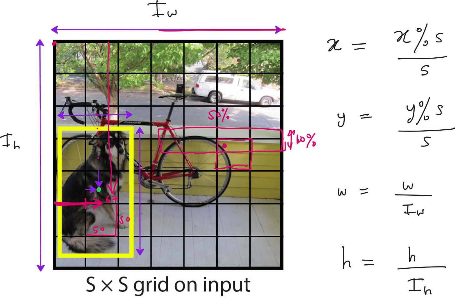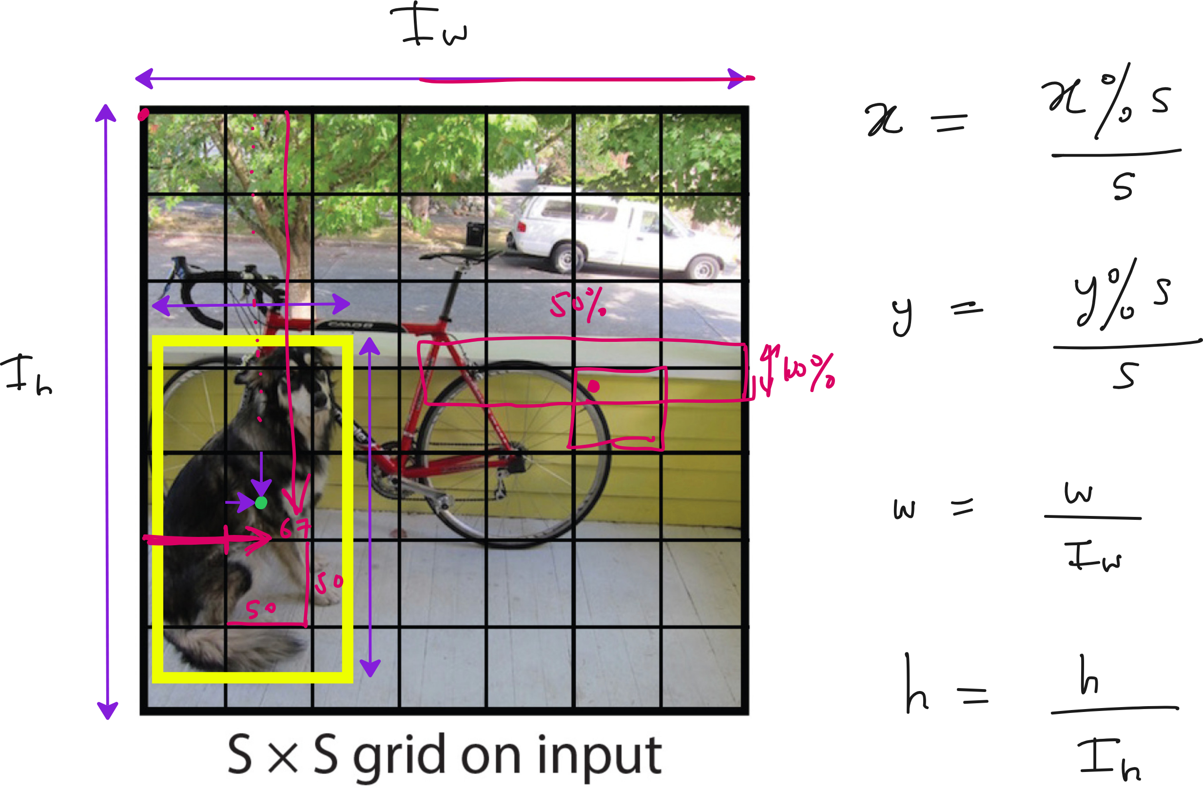 One of the most important technical contributions of YOLO is the way it parameterizes bounding boxes. The model predicts the center coordinates relative to the grid cell, and the width and height relative to the whole image size. This normalization ensures that predictions remain stable across images of different resolutions.