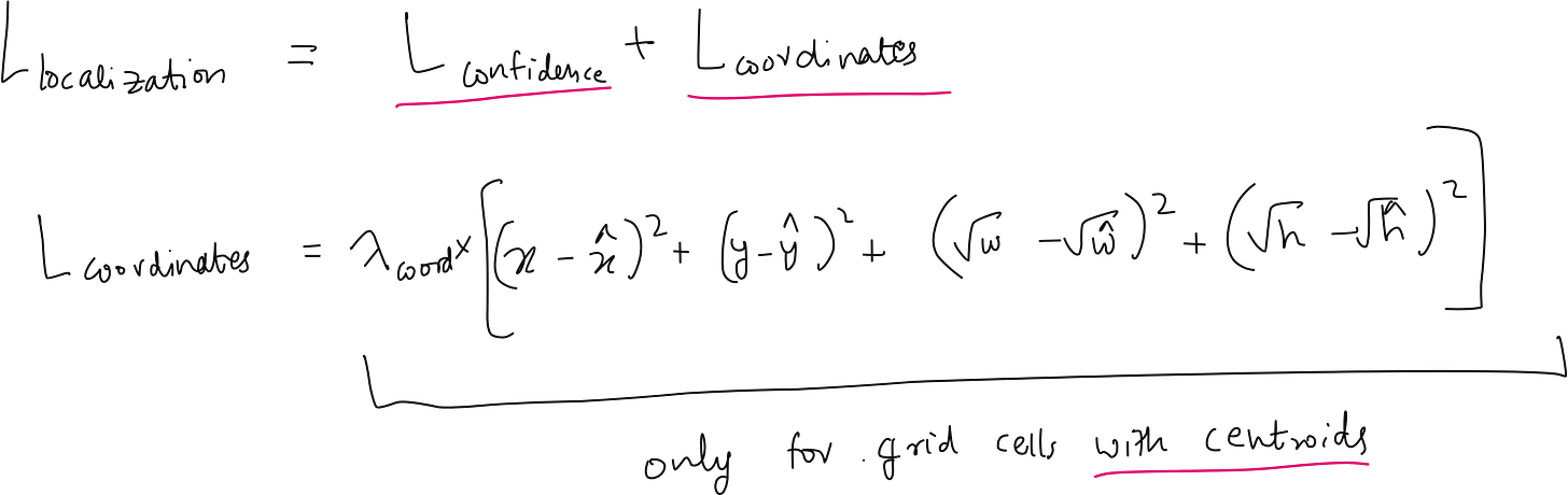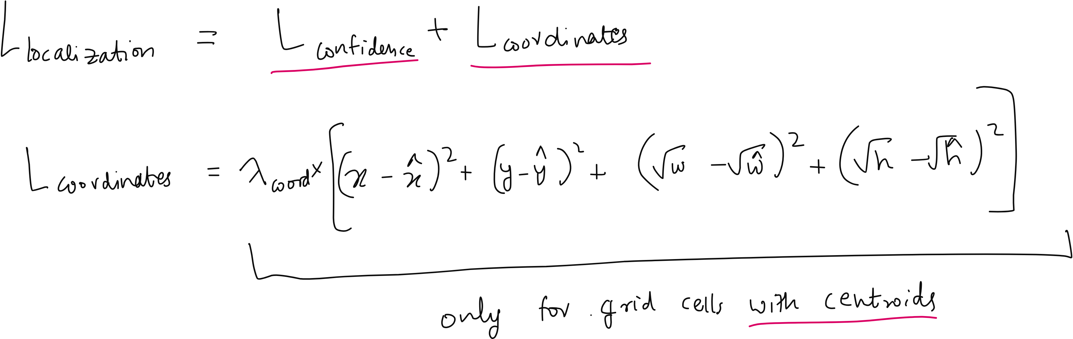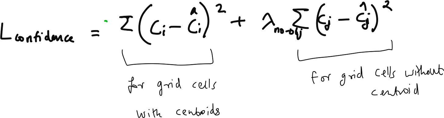 Another innovation was the decision to take the square root of the width and height during training. Why? Because if you make a mistake of two pixels in predicting the width of a small box, it is a much bigger problem than making the same two-pixel mistake in a large box. Taking the square root penalizes small box errors more heavily, which improves detection accuracy for small objects.