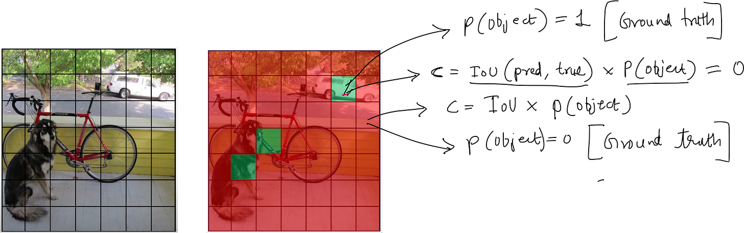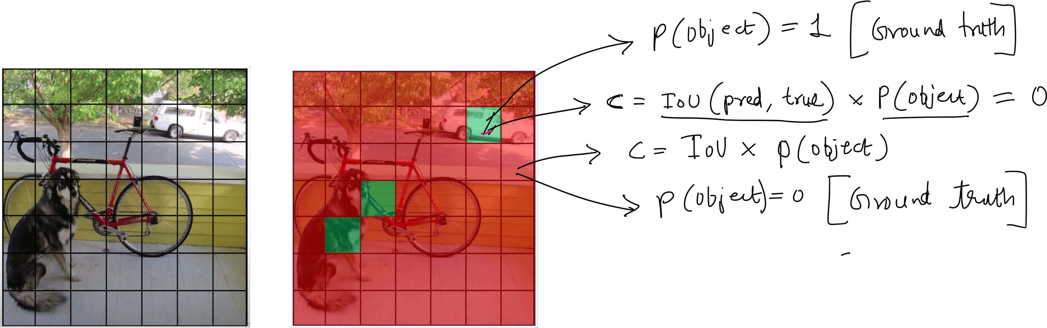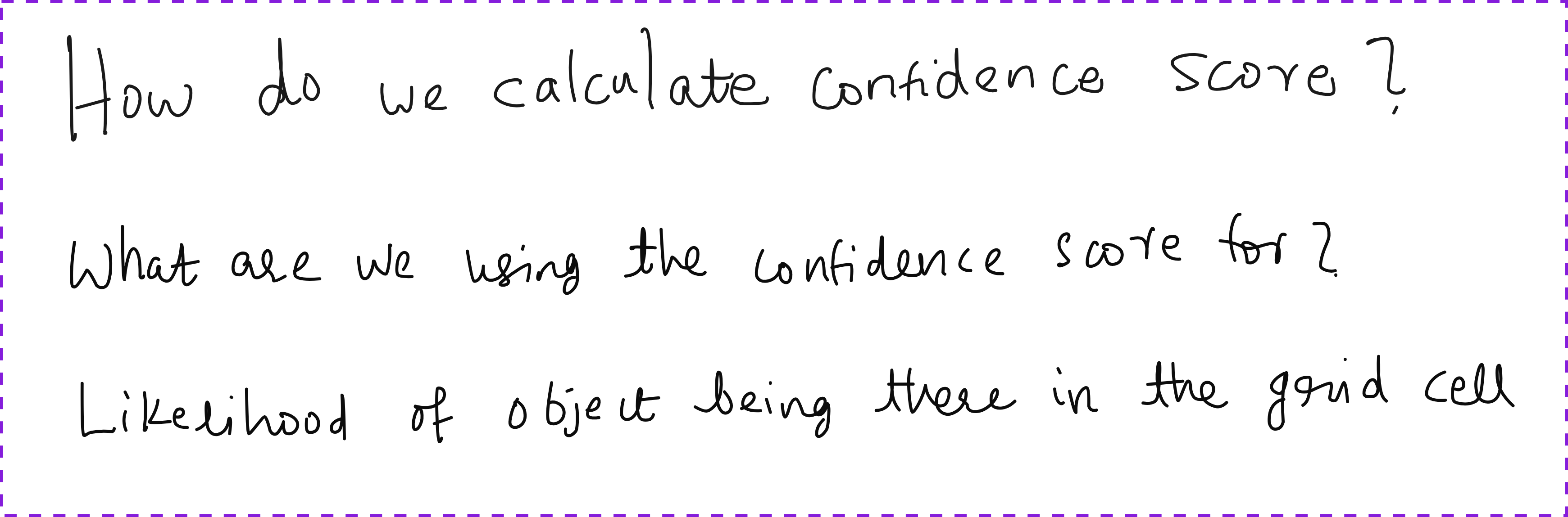 A recurring question in the discussion was about the confidence score. What exactly is it? The confidence score is the product of two terms - the probability that an object is present in the bounding box (objectness) and the probability that the object belongs to a particular class (classification). If the model is 90% sure that there is an object in the box and 80% sure that it is a dog, the confidence score is 0.72. During inference, we apply a threshold to this score to decide which detections to keep.
