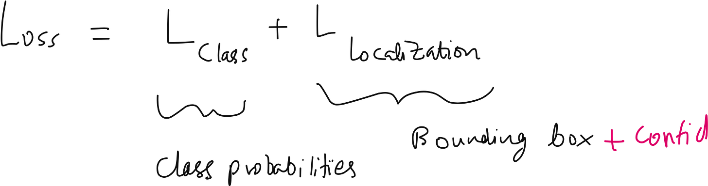 YOLO uses a multi-part loss function. It penalizes three types of mistakes: